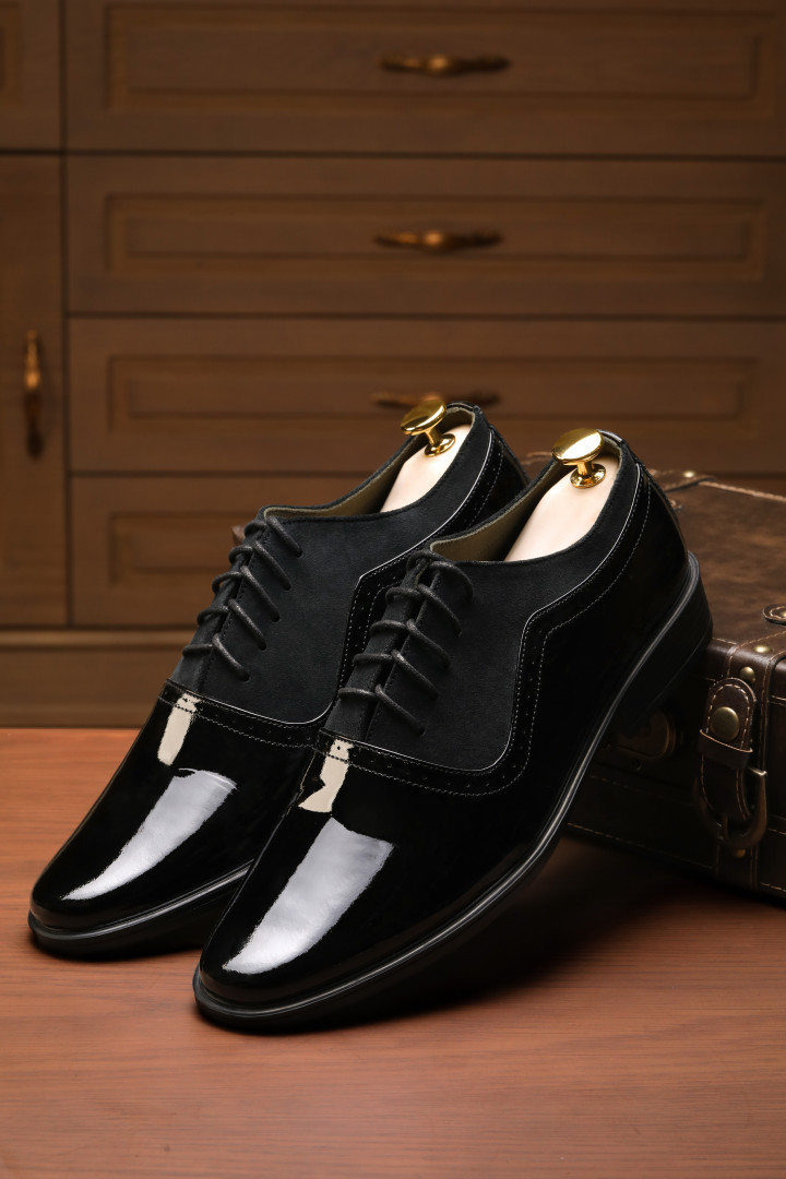 Giày đen bóng phối da lộn